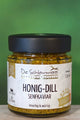 | Zutaten: | Zucker, 27 % SENFSAAT, Sonnenblumenöl, Apfelessig, Wasser, Branntweinessig, 2,8 % Honig, Salz, 1,3 % Dill, Aroma, Gewürze, Paprikakonzentrat, Kräuter. |