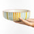 Diese handgefertigte Schüssel ist ein wahrer Blickfang. Mit ihrem großzügigen Fassungsvermögen und klassischen Streifenmuster zieht sie alle Blicke auf sich. Das zeitlose Design passt perfekt zu unseren Aufbewahrungsdosen "Stripes" und bringt harmonische Eleganz auf deinen Tisch.