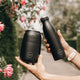 - Außerdem ist die Flasche auslaufsicher und frei von Kondensation, so dass Sie sie in Ihre Tasche werfen können, ohne sich Sorgen über Verschüttungen oder Feuchtigkeit zu machen.